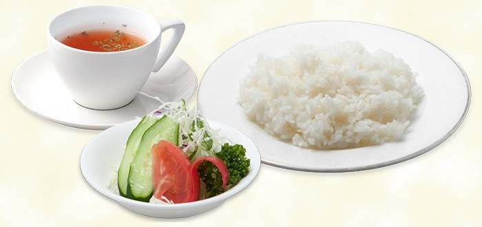 スープ・ミニサラダ・ごはんがセットになったおすすめセットです。ステーキや各種お料理とセットでどうぞ。